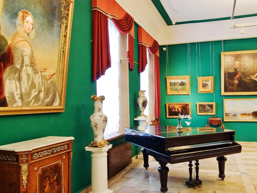 Здесь собраны работы известных русских художников — например, картины основателя музея А. П. Боголюбова, полотна К. С. Малевича и И. С. Глазунова.