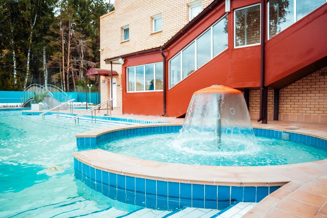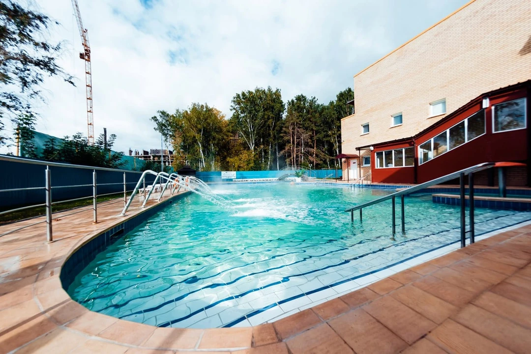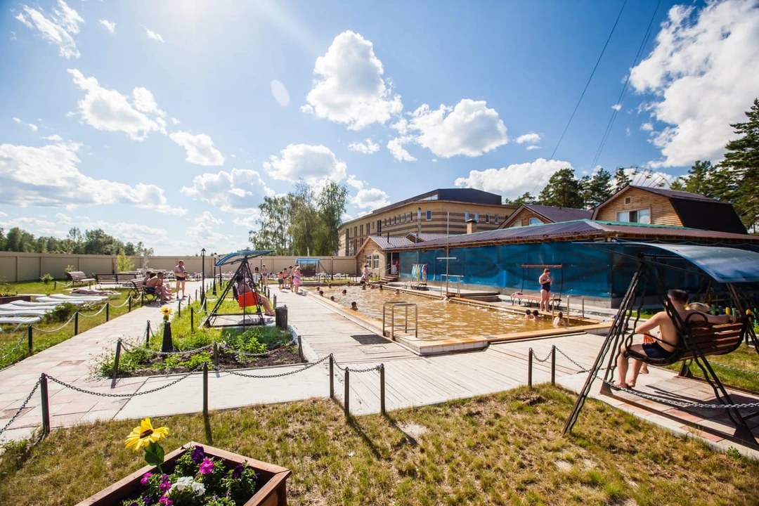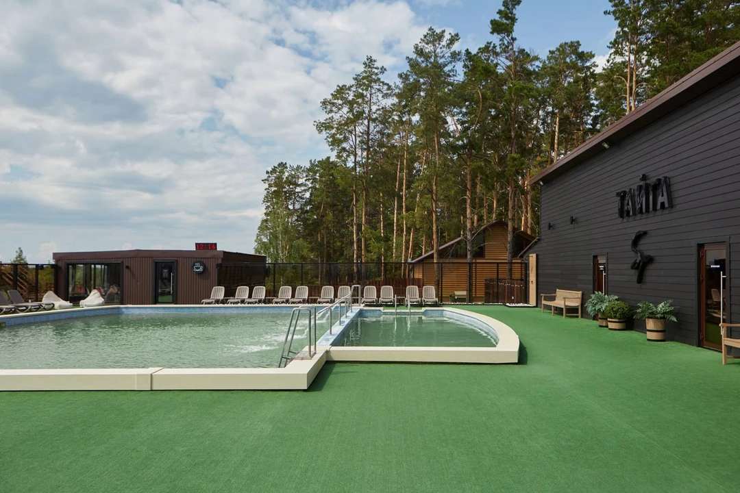 Загородный клуб в 30 километрах от Тюмени. На территории спа‑комплекса — три бассейна разного размера, включая детский. Все купели наполнены минеральной водой температурой +45°C. Она идёт с глубины порядка километра и отличается высоким содержанием полезных веществ: брома, хлорида натрия и йода. Купание в ней помогает при различных заболеваниях органов ЖКТ, сердечно‑сосудистой и нервной систем, опорно-двигательного аппарата.