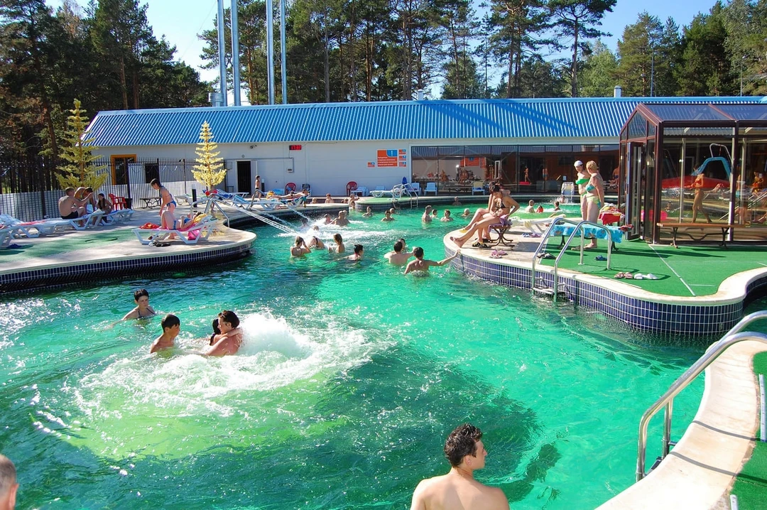 Экопарк в сосновом лесу в 18 километрах от Тюмени. История горячего источника началась в 1980‑х, когда в поисках нефти геологи пробурили скважину глубиной 1256 метров. В 2023 году на этом месте открыли спа‑центр с двумя бассейнами. В одном — целебная вода температурой +37–38°С. Она насыщена ортоборной и метакремниевой кислотами, йодом и железом. Такой состав помогает в лечении кожных заболеваний, сердечно‑сосудистой, эндокринной и нервной систем, опорно-двигательного аппарата.