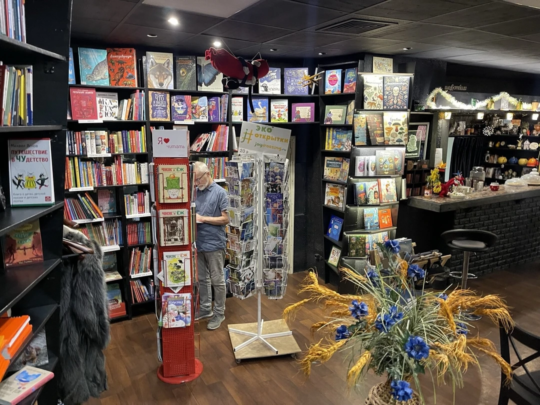 Из этого уютного магазинчика книголюбы нередко уносят настоящие сокровища. «Ходасевич» находится в небольшом полуподвальном помещении, которое напоминает дедушкину библиотеку. На полу лежит большой тканый ковёр, торшеры отбрасывают тёплый свет, а книг так много, что не все помещаются на полках стеллажей. Многие разложены по коробкам и хаотичными стопками расставлены по углам — здесь царит приятный творческий беспорядок.
