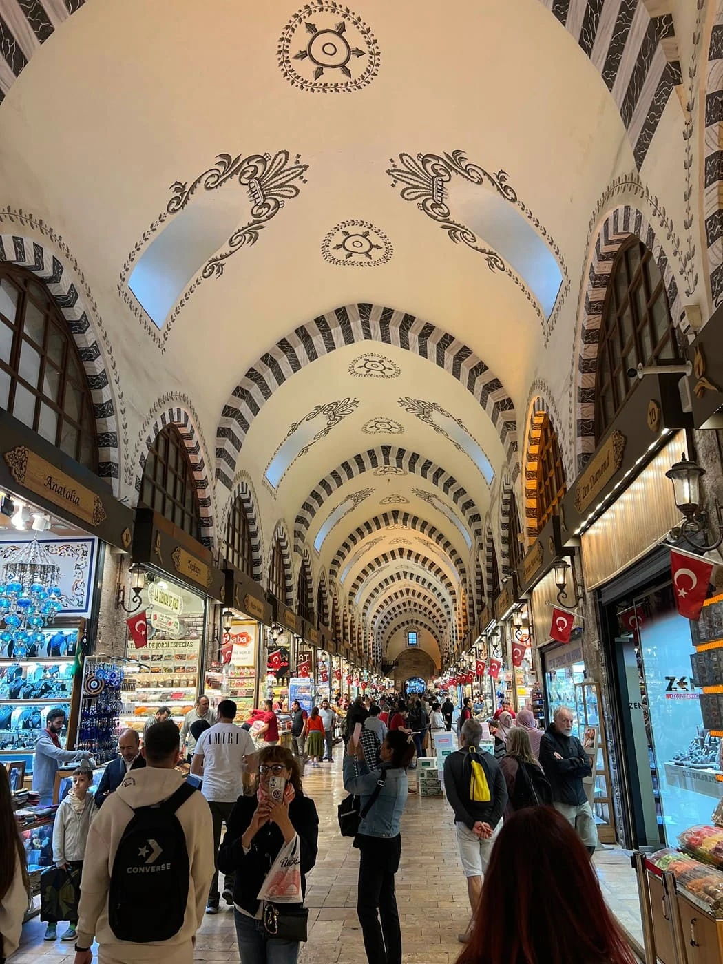 Гранд‑базар — это крытое торговое помещение, соединяющее в себе 66 улиц, среди которых есть даже кладбище. Оказавшись там, мы попали в бесконечный лабиринт длинных торговых рядов. Бродить по базару можно часами, особенно если не знать, куда идти, и не пользоваться навигатором.