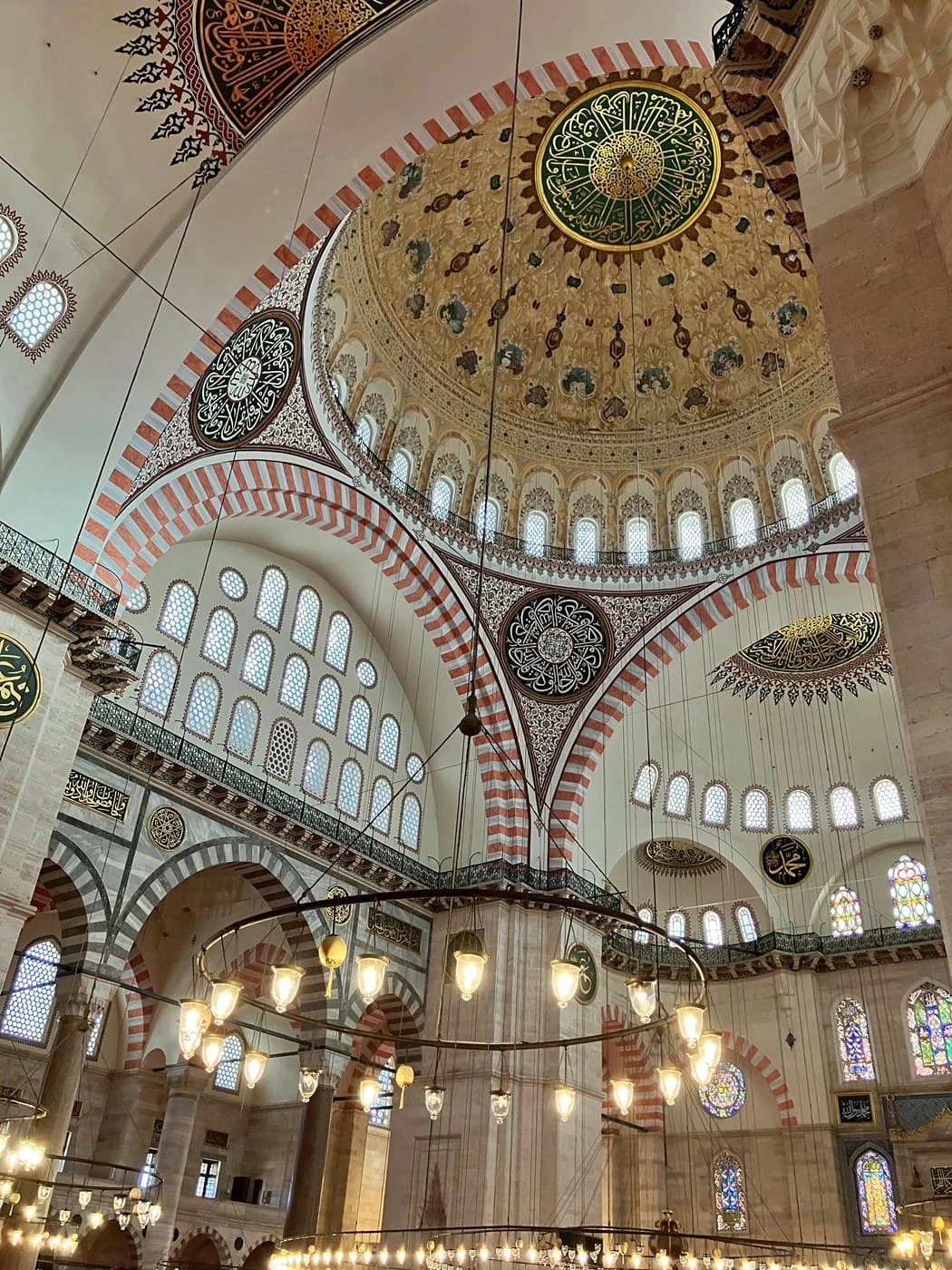 Побывать в них стоит, но за душевным умиротворением лучше отправиться, например, в мечеть Сулеймание. Построена она была по приказу султана Сулеймана. Она считается второй по значению после Голубой мечети. Расположена она на холме, с её территории открывается прекрасный вид на город. Также во дворе есть небольшое кладбище, и рядом с ним построены две усыпальницы, где захоронены султан Сулейман, его жена Хюррем и их дочь. А если обойти мечеть, то можно увидеть захоронение архитектора Мимара Синана, который проектировал и строил эту мечеть.