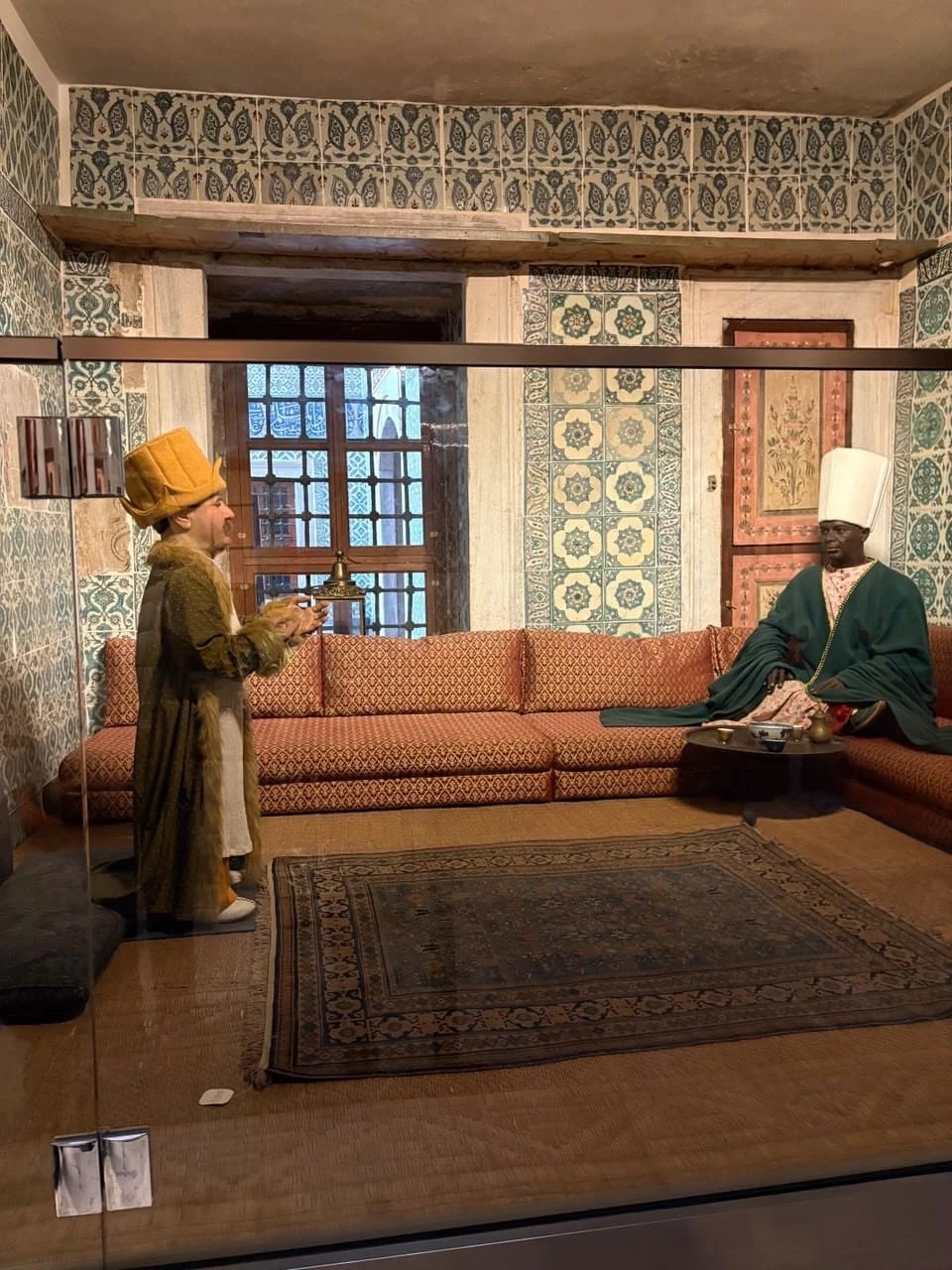 По территории дворца мы ходили в группе с гидом Исламом. Гид приоткрыл нам двери в прошлое, рассказав, как жили султаны, что такое гарем и кто в него попадал, кто такие евнухи, как проходила жизнь в стенах дворца и жизнь самой империи. Мы узнали много интересного — например, что гарем изначально находился за стенами дворца, и, чтобы приблизить себя к султану, его жена Хюррем устроила пожар в здании гарема. После этого султан приказал построить помещения под гарем на территории дворца.