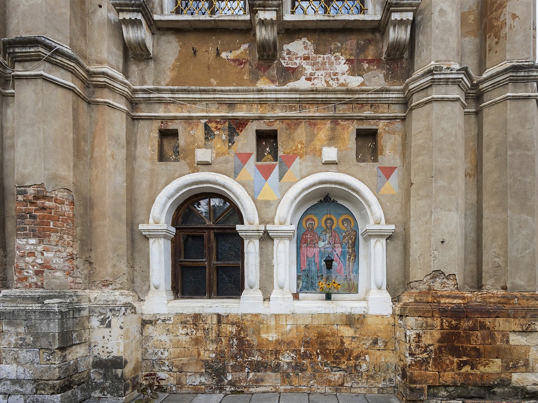 Самое древнее из дошедших до нас монастырских строений — надвратная церковь Спаса Нерукотворного, возведённая во второй половине XVII века. Храм в красно‑белых цветах считается ярким представителем нарышкинского барокко. На нижнем этаже собора, в так называемой подклети, была устроена усыпальница рода Римских‑Корсаковых.