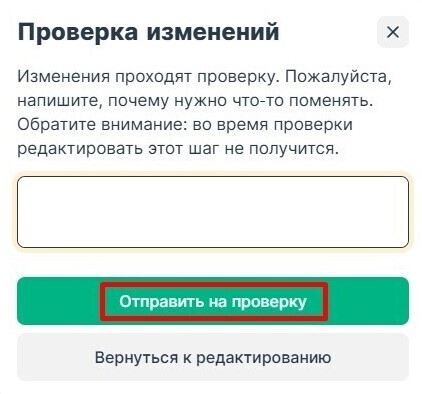 4. Появится окно «Комментарий»: укажите в нём, почему нужно внести правки. Это важно для качественной модерации изменений