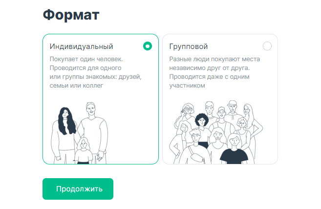 Выбрать формат экскурсии вы можете при создании экскурсии — на шаге «Формат».