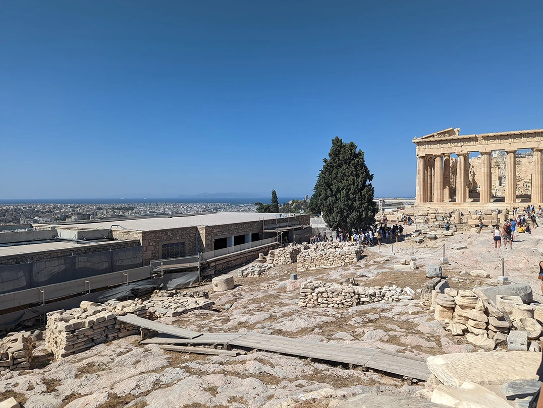 А ещё прогулка по музею — прекрасный шанс полюбоваться видом на сам Акрополь. Из залов открываются замечательные виды на священный для древних греков холм.