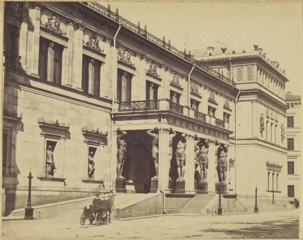 Новый Эрмитаж — первое здание, которое построили в России как публичный музей. Автором проекта стал приглашённый императором Николаем I немец Лео фон Кленце. Именно ему и принадлежала идея украсить крыльцо Эрмитажа атлантами. Есть версия, что их прототипом стали исполинские статуи, украшавшие храм Зевса на Сицилии. Правда, первоначально архитектор рассматривал и другой вариант — установить под балконом музея кариатид (женские фигуры), но Николай I эту идею отверг.