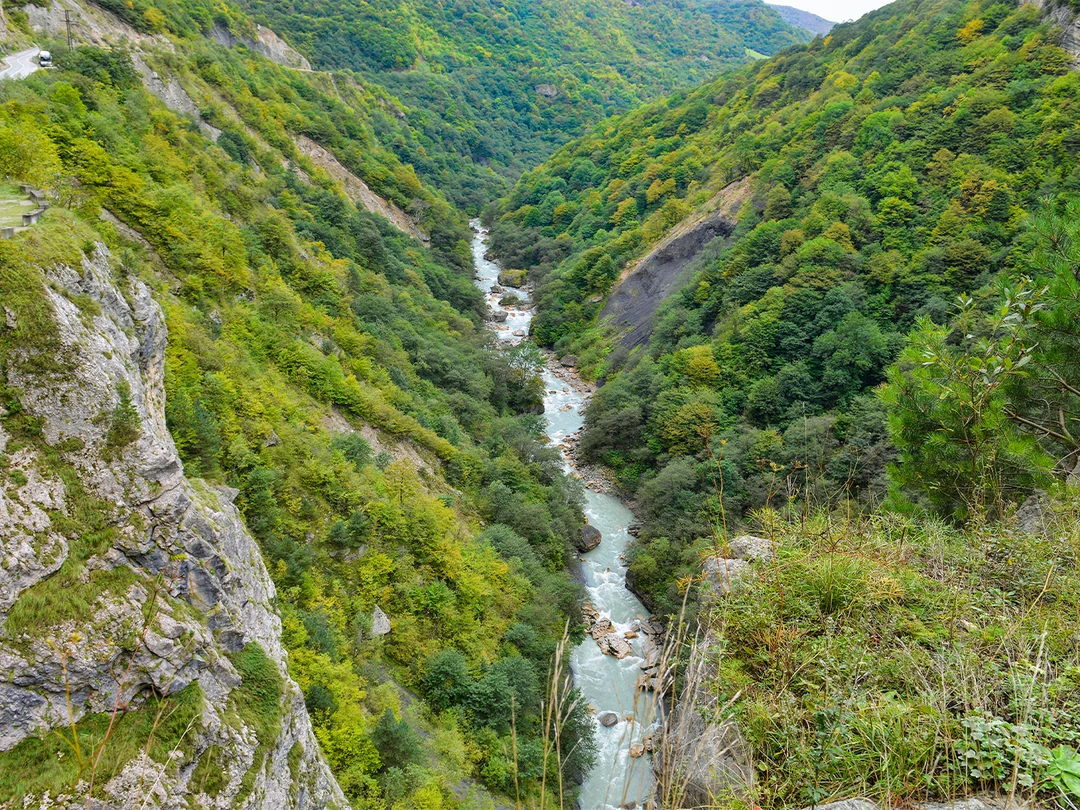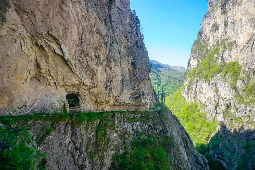 Черекская теснина. Узкое и глубокое ущелье реки Черек. Сюда приезжают прогуляться по старой дороге, построенной в конце XIX века. Пешеходная тропа заканчивается заброшенным селением Кюнюм‑Эль, где находится старинная сторожевая башня Абаевых.