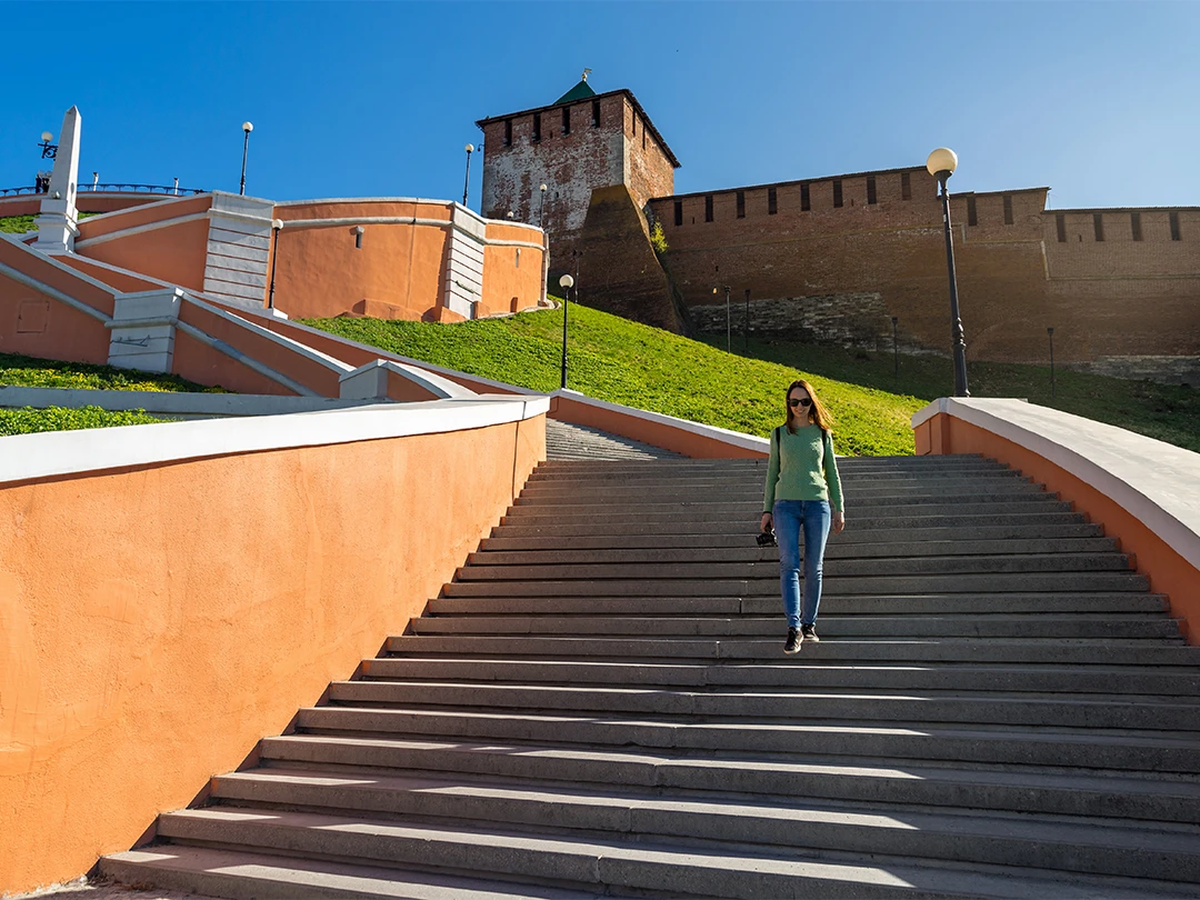 Чкаловская лестница — must‑visit для путешественников в Нижнем Новгороде. И дело не только в красоте сооружения. Лестница считается одной из лучших смотровых площадок в городе: с неё как на ладони видно Стрелку, канатную дорогу в Бор и Нижне‑Волжскую набережную. Недаром местные гиды часто включают Чкаловскую лестницу в маршруты прогулок по Нижнему Новгороду и Нижегородскому кремлю.