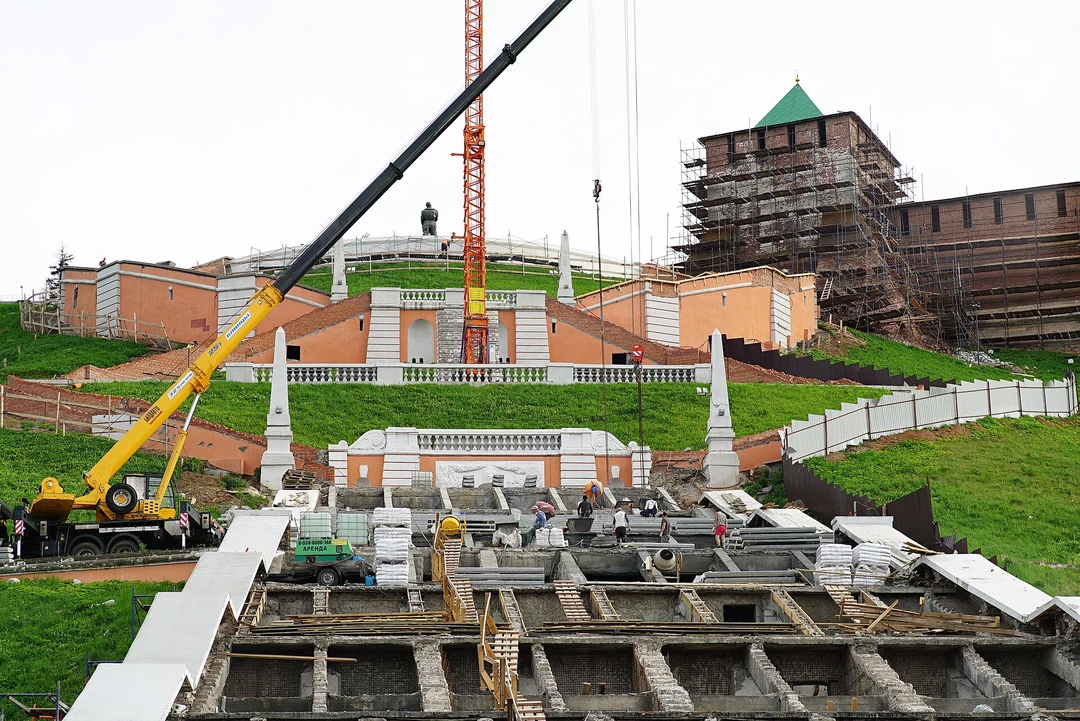 В 1940 году на набережной, рядом с Георгиевской башней, открыли памятник В. П. Чкалову — знаменитому лётчику‑испытателю, который совершил первый беспосадочный полёт над Северным полюсом. Было решено, что именно от монумента и протянется вниз грандиозная лестница.