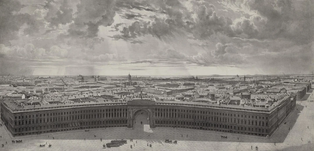 Перед ним стояла непростая задача — создать функциональное здание для военных и гражданских министерств и, одновременно с этим, подчеркнуть доминанту площади — Зимний дворец. На месте частных домов Росси решил возвести два отдельных корпуса, которые объединяла тройная арка. Западное крыло занимало военное ведомство, а восточное — Министерство финансов и иностранных дел. Строительство продолжалось 10 лет и было завершено в 1830 году.