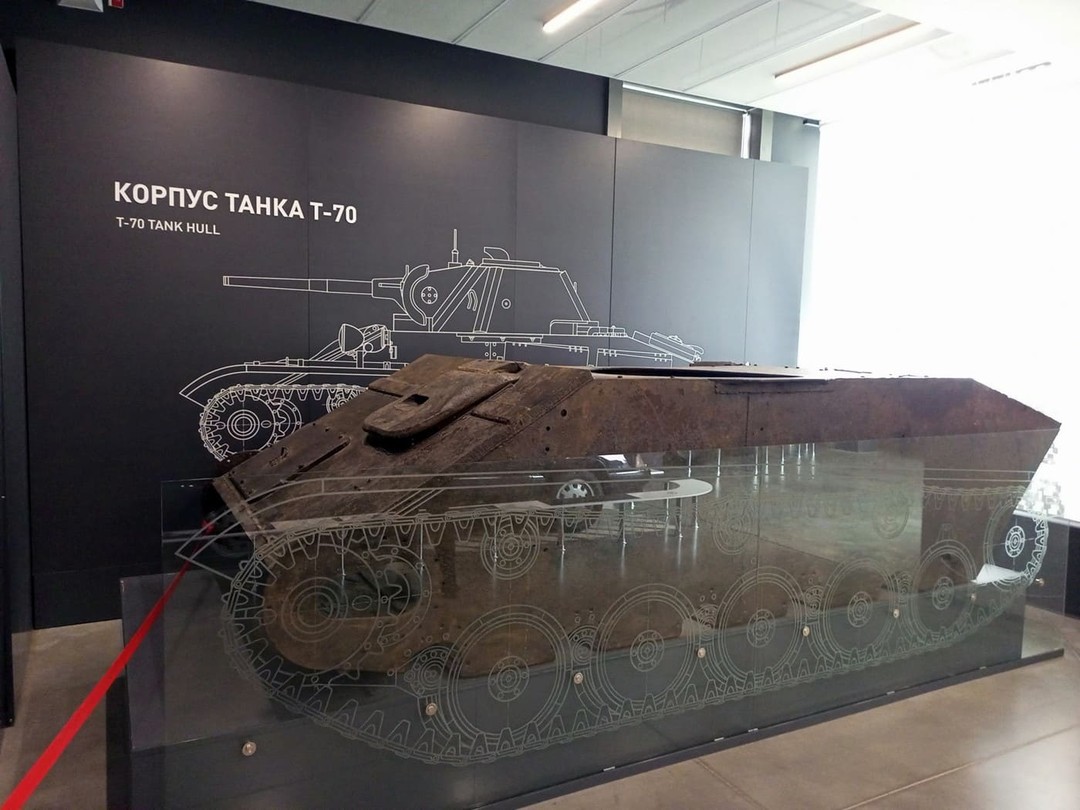 Корпус лёгкого танка Т‑70. Такие танки автозавод выпускал во время Великой Отечественной войны. Корпус отслужившей машины рабочие обнаружили под землёй, когда перестраивали один из цехов завода. По словам ветеранов, возможно, именно в нём сотрудники ГАЗа укрывались во время авианалётов.