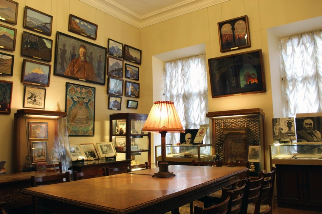 Здесь постарались воссоздать атмосферу индийского дома семьи. В экспозиции представлены не только работы самого художника, но и личные вещи и артефакты из семейной коллекции: буддийские статуи, алтарь из Тибета, фотографии и, конечно, картины, вдохновлённые буддийской философией и культурой стран Востока. Коллекцию живописи художника и его сына Святослава можно посмотреть также на ВДНХ — здесь представлено большое собрание, в котором есть знаменитые картины «Чудо», «Клад захоронённый», «Армагеддон», «Свет небесный» и работы гималайского периода.