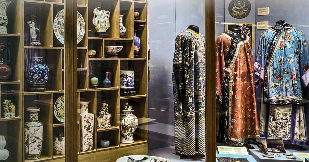 Экспозиция включает произведения живописи и предметы декоративно-прикладного искусства, созданные в Поднебесной с древнейших времён вплоть до начала ХХ века. Здесь можно увидеть древний треножник для подогревания жертвенного мяса, каменные церемониальные сосуды и кубки периода бронзового века. А ещё загадочные нефритовые диски эпохи неолита, о точном назначении которых учёные до сих пор спорят. Большинство склоняются к тому, что их использовали в погребальных ритуалах.