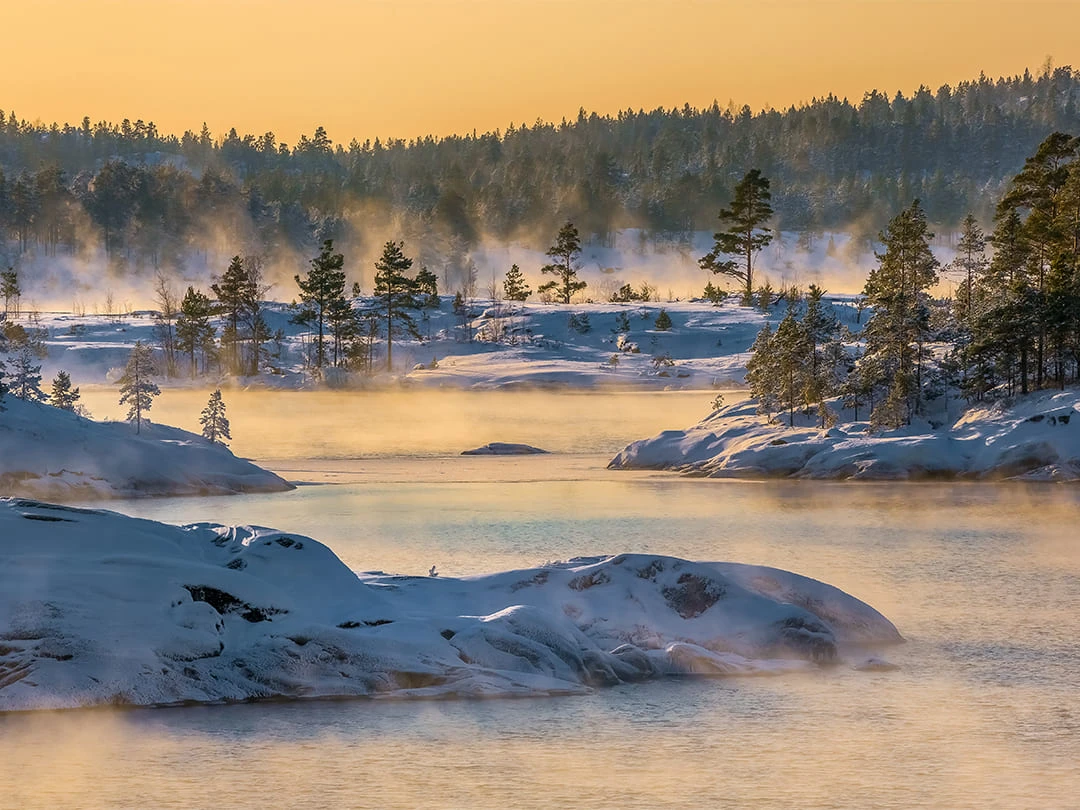 В последнее время популярность набирают и зимние поездки на Ладогу. Зима здесь снежная и в меру морозная (температура редко опускается ниже –16°C), но световой день длится всего пять часов, поэтому поездку стоит планировать тщательнее.