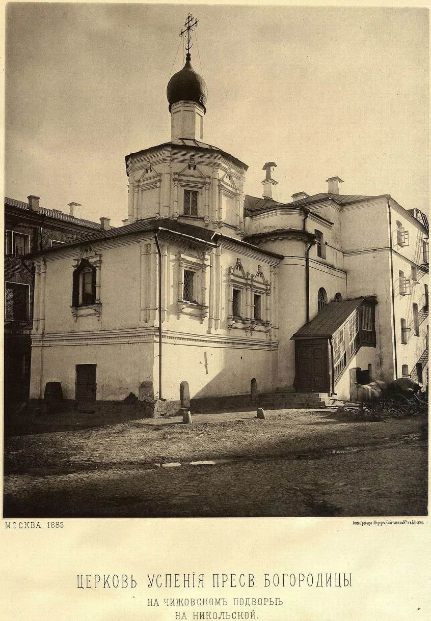 В последней четверти XVIII века усадьба вместе с храмом сменила нескольких хозяев, пока не перешла к семье советника Петра Кусовникова. При нём к церкви пристроили крыльцо и сделали её приходской. В 1842 году последними владельцами имения стали купцы Гавриил и Алексей Чижовы. На месте усадебного дома они возвели торговые палаты и гостиницу. Весь комплекс стали называть Чижевским подворьем. Оно полностью закрыло Успенскую церковь со стороны Никольской улицы — попасть в храм можно было только через небольшую арку.