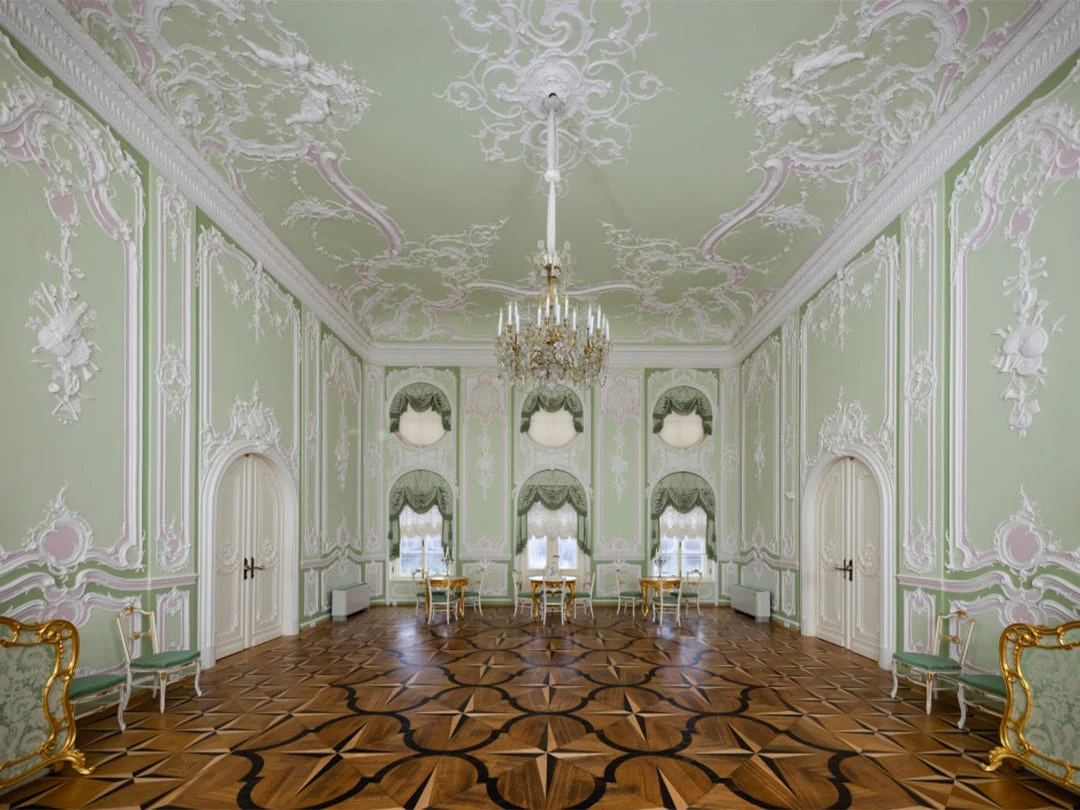 Здесь можно полюбоваться на коллекцию фарфора и гравюр, росписи на стенах, лепнину, старинную мебель. На стенах висят портреты знатных особ, которые жили здесь в разное время.