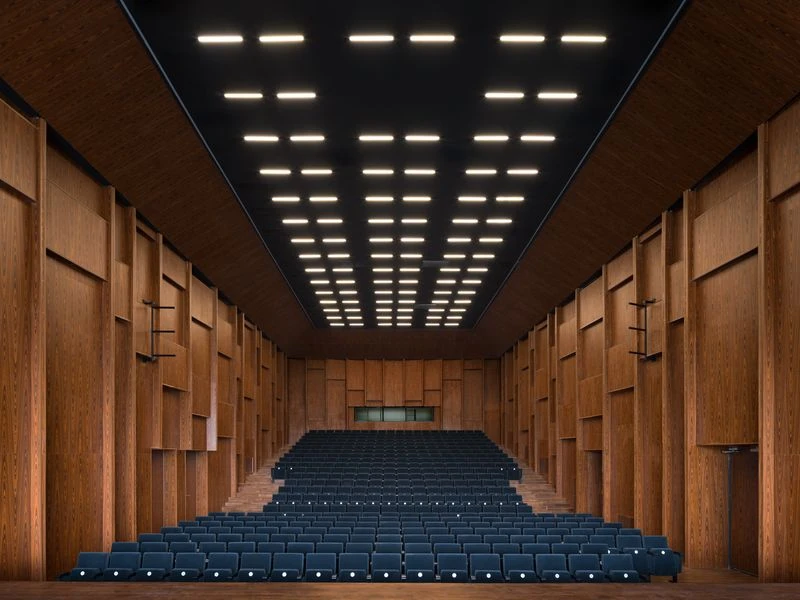 Это площадка для самых разных мероприятий: от симфонических концертов до театральных постановок. Зал рассчитан на 430 мест, а внутри оформлен деревянными панелями. Его фишка — огромное окно прямо за сценой, из которого открывается вид на Волгу. При необходимости его закрывают опускающимися деревянными панелями, а иногда, наоборот, используют пейзаж в качестве дополнительных «декораций» к спектаклям.