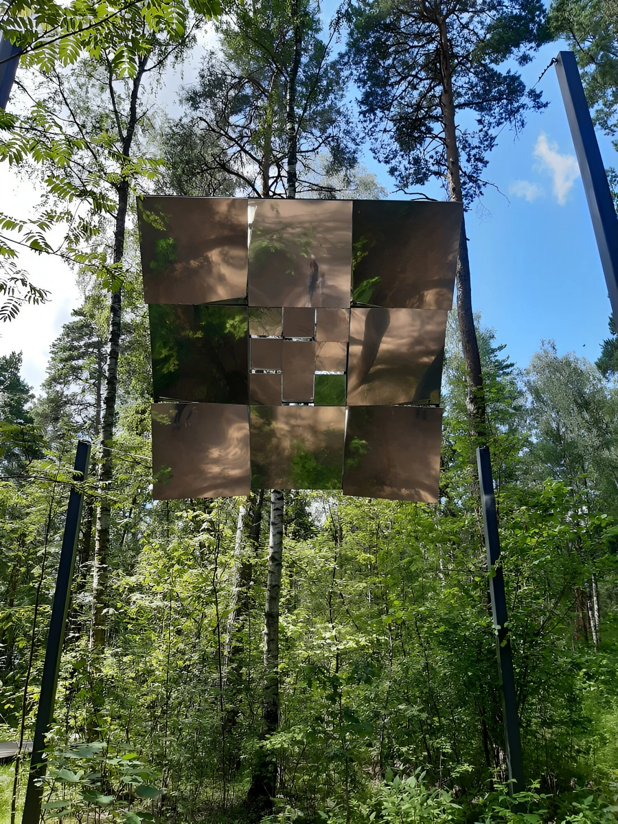 «Парящий» среди деревьев «Куб космоса» — трёхмерное изображение чёрного квадрата. Поверхность арт-объекта перфорирована, внутри установлены 24 светильника. Таким образом, если обойти его по кругу, появится иллюзия, что в каждом из отверстий куба вспыхивает звезда. Особенно эффектно эта работа выглядит в тёмное время суток: светясь изнутри, она делает окружающий пейзаж таинственным и романтичным.