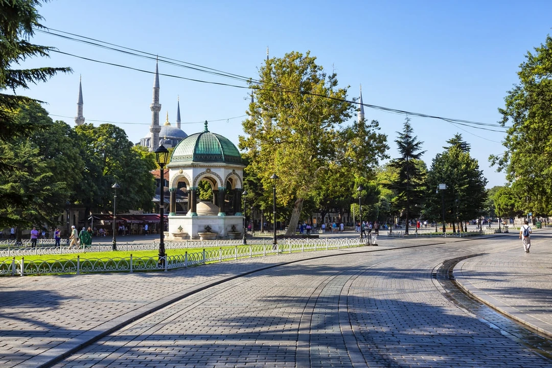 Доехать сюда получится на трамвае. От остановки «Султанахмет» до фонтана кайзера Вильгельма II — три минуты пешком. Ориентируйтесь на минареты Голубой мечети (она же Султанахмет) и купола Айя‑Софии. Также маршрут до площади проложить можно от побережья Босфора — туда приходят автобусы из района Эминёню.