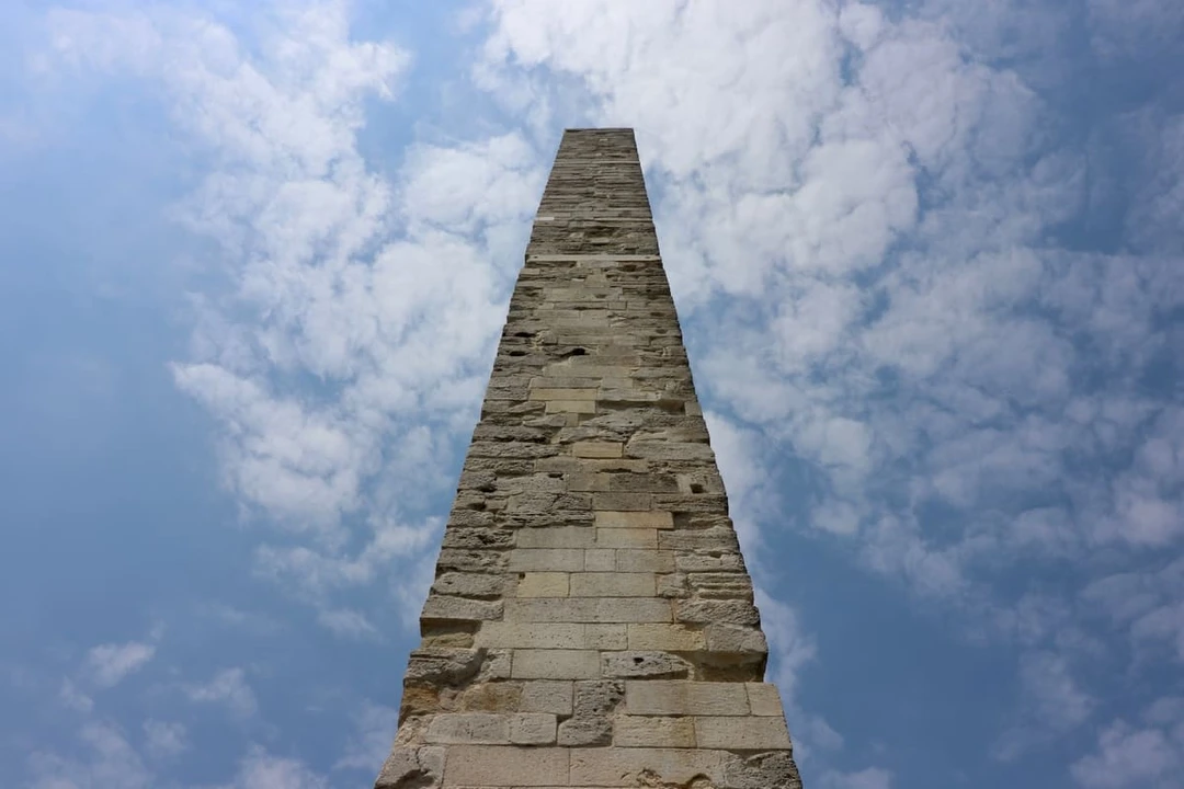 Он находится на площади Ипподром в Стамбуле — увидеть его можно практически за мечетью Султанахмет. Хотя конструкция высотой 21 метр и называется обелиском, по факту им она не является. Изначально обелисками именовали изваяния из гранитного монолита. Четырёхгранный столб сделан из другого материала и в иной технике: он сложен из небольших скреплённых между собой блоков известняка. Когда именно обелиск возвели в столице Византийской империи, точно неизвестно. Предположительно это произошло в IV–V веках при правлении императора Константина Великого.