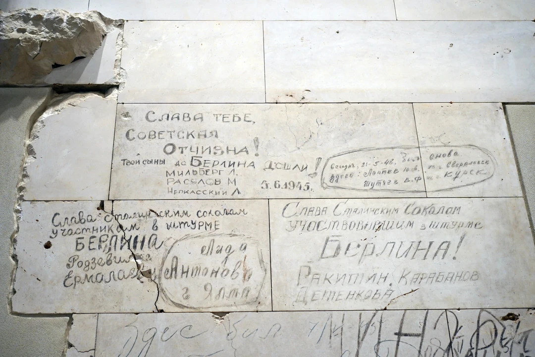 Внутри Рейхстага сохранились фрагменты стен с надписями советских солдат, участвовавших во взятии Берлина. Более 700 автографов теперь покрыты защитным составом, который не позволяет им выцвести. Большая часть надписей находится в северном вестибюле.