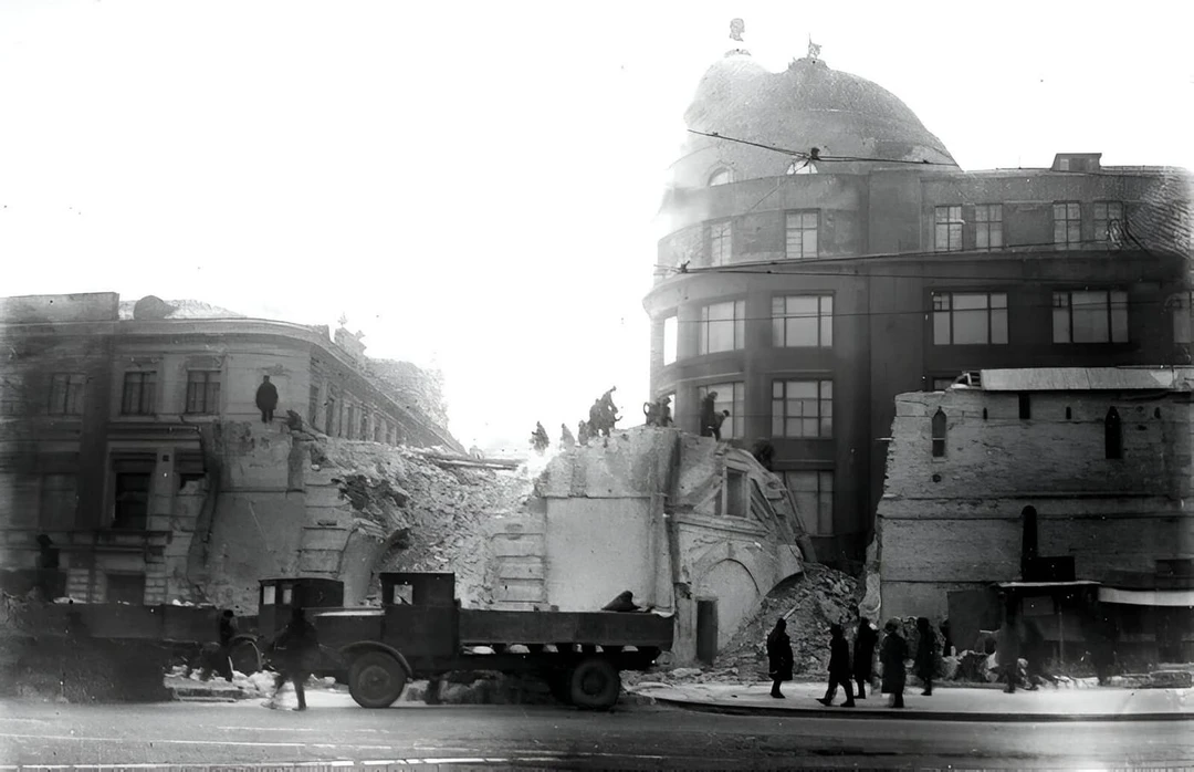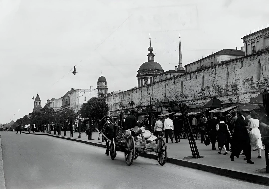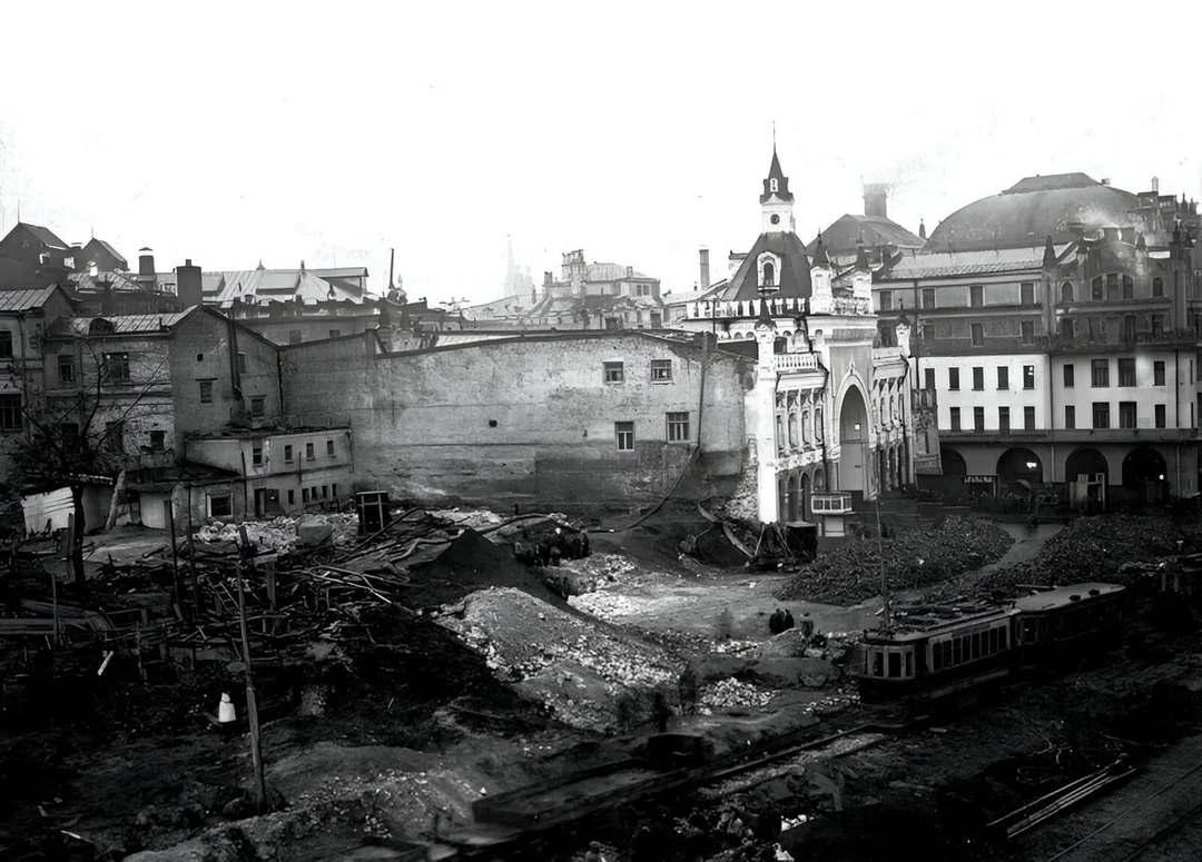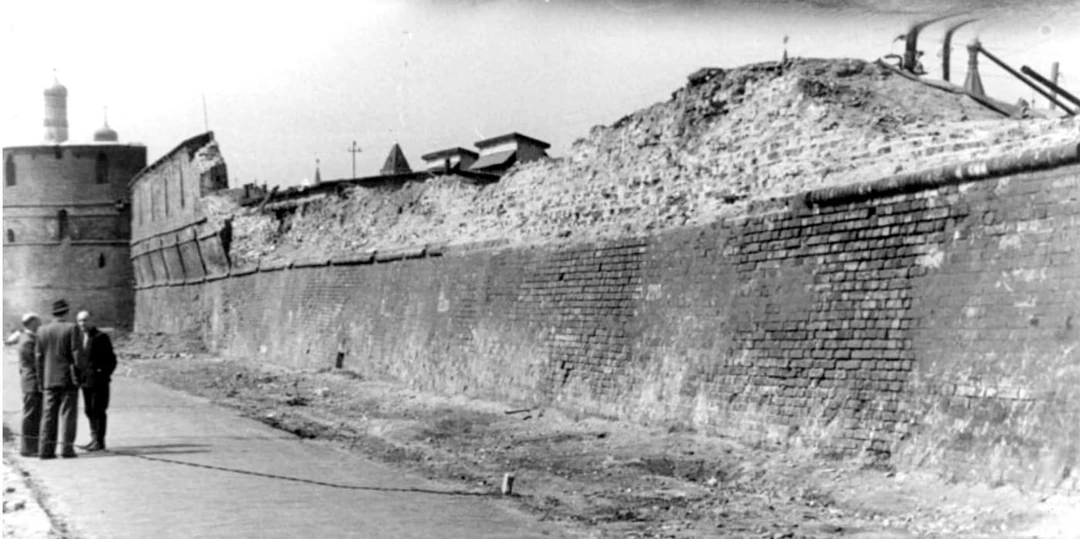 Снос стены начали в 1934‑м с Ильинских ворот, а затем объявили субботник по разбору участка от Владимирских до Варварских ворот. Часть материала использовали для укрепления тоннелей метро, которое строили как раз в этом месте. Уцелел небольшой фрагмент за гостиницей «Метрополь» и стены в Зарядье вдоль Китайгородского проезда и Москворецкой набережной.