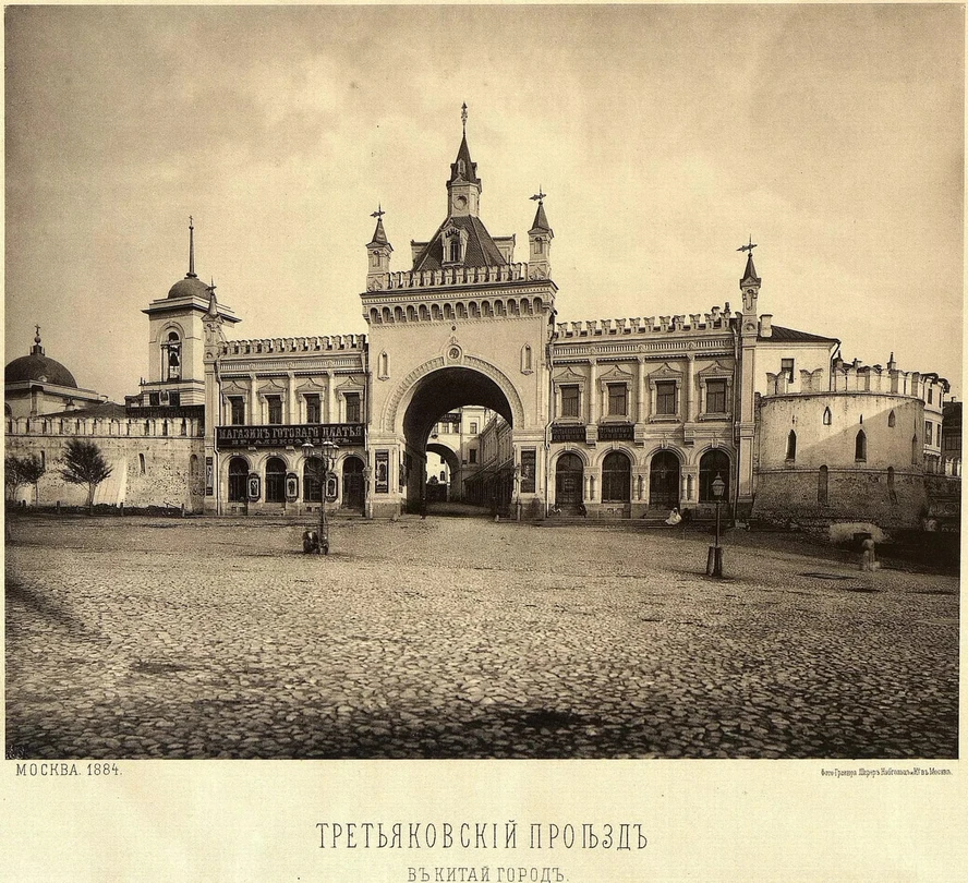 Этот объект можно условно считать частью Китайгородской стены, хотя появился он только в 1871 году. Дом в русском стиле с воротами на Театральном проезде спроектировал архитектор А. С. Каминский. Здание он украсил островерхим шатром, башенками со шпилями и зубцами. Во время сноса Китайгородской стены ворота уцелели, а в начале XXI века были отреставрированы вместе с прилегающим к ним Третьяковским проездом.