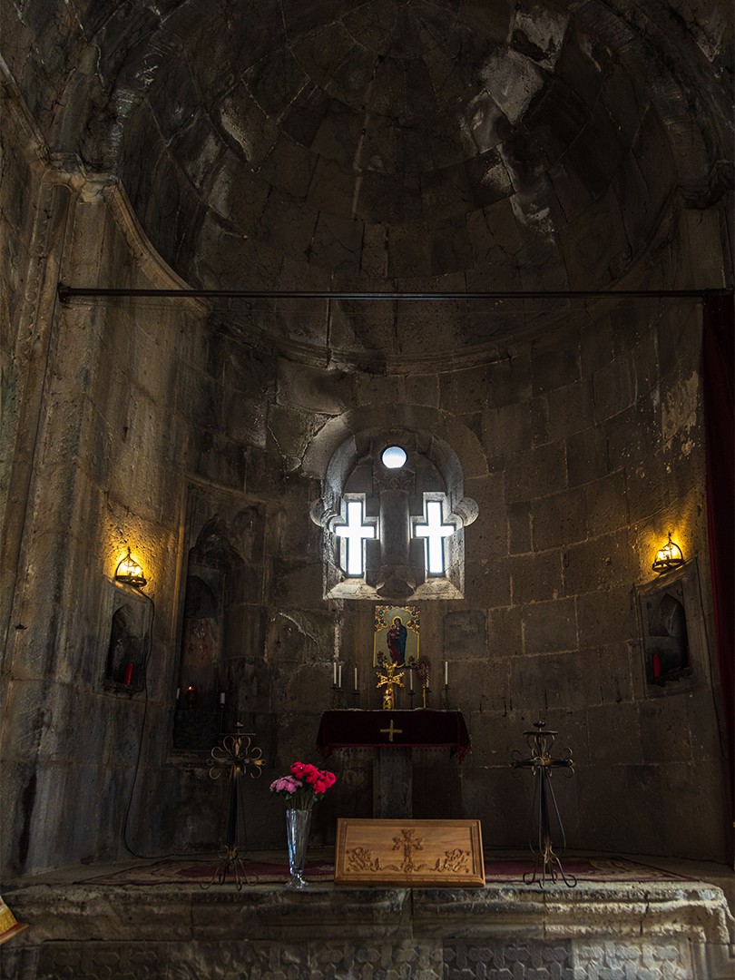 На территории монастыря можно также прогуляться по университетскому комплексу. В одном из помещений общежитий сейчас располагается небольшой музей, где выставлены найденные при раскопках древние хачкары — каменные плиты с изображением креста на лицевой стороне. Рассказываем подробнее о каждой из достопримечательностей.