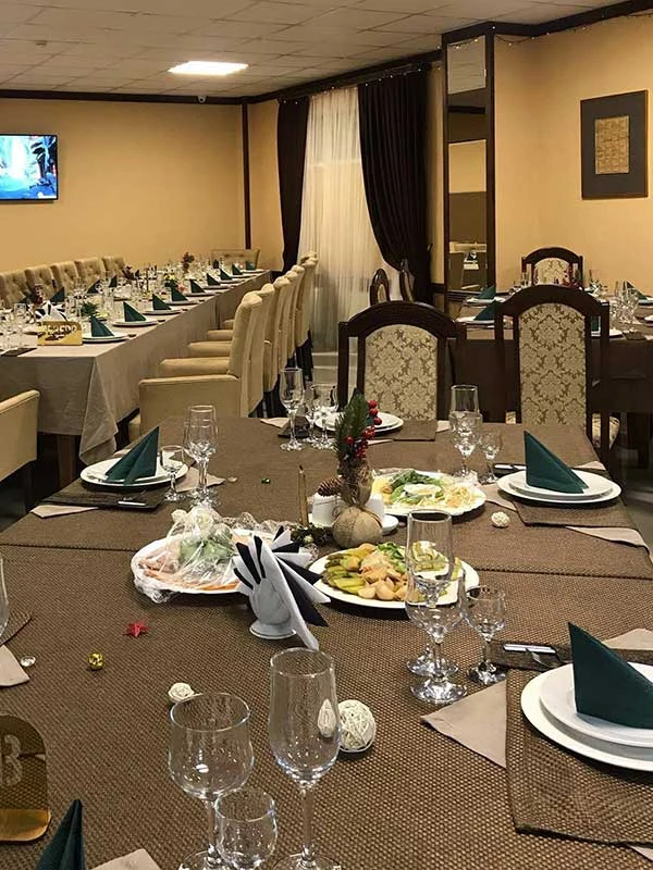На территории комплекса работает мангал‑кафе «Гедуко» с летней верандой и деревянными беседками. Также есть основной зал с мягкими диванами, где можно перекусить в любое время года. Кроме того, здесь можно провести массовое мероприятие. Кафе работает с 9:00 до 23:00.