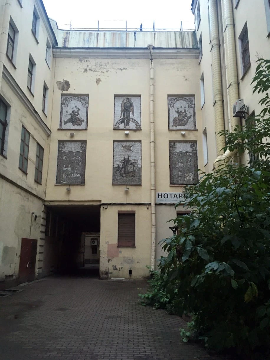 А ещё эта постройка тесно связана с судьбой Сергея Довлатова. Известный советский писатель‑эмигрант прожил в одной из коммуналок этого дома почти 30 лет — с 1944‑го до 1972‑го. Яркие воспоминания о жизни на Рубинштейна можно встретить в его произведениях. Сегодня фасад дома украшает мемориальная доска в память о писателе. А ещё возле здания можно увидеть один из самых популярных литературных памятников города: скульптурная композиция изображает Довлатова и его любимого фокстерьера Глашу.