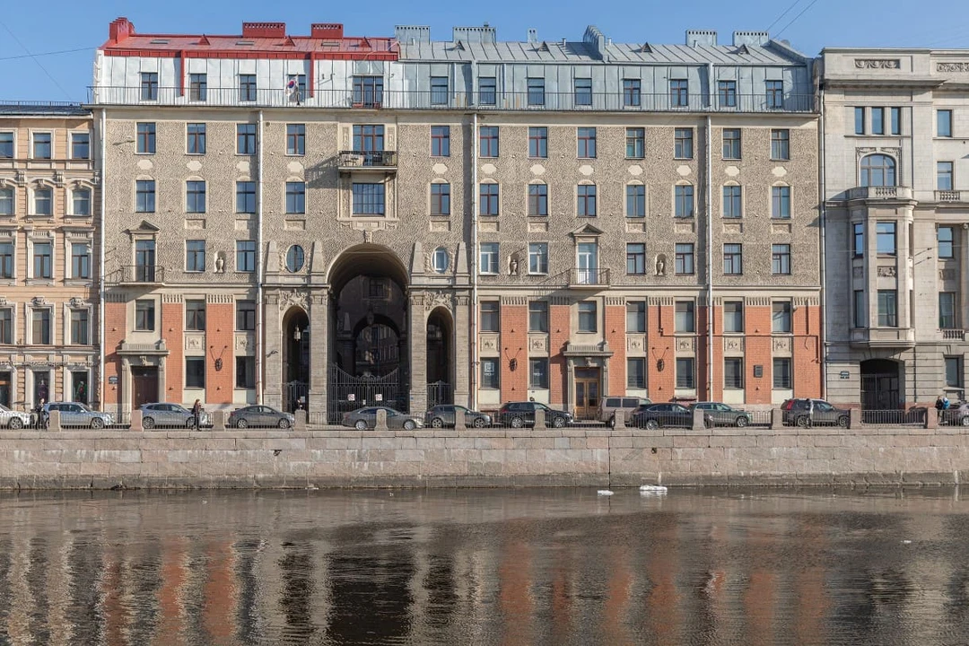 Фасады дома в стиле северного модерна украшают трёхпролётные арки. Они декорированы пилястрами, обелисками и изящными фонарями. Оценить всю грандиозность этой постройки получится как со стороны улицы Рубинштейна, так и с набережной Фонтанки.