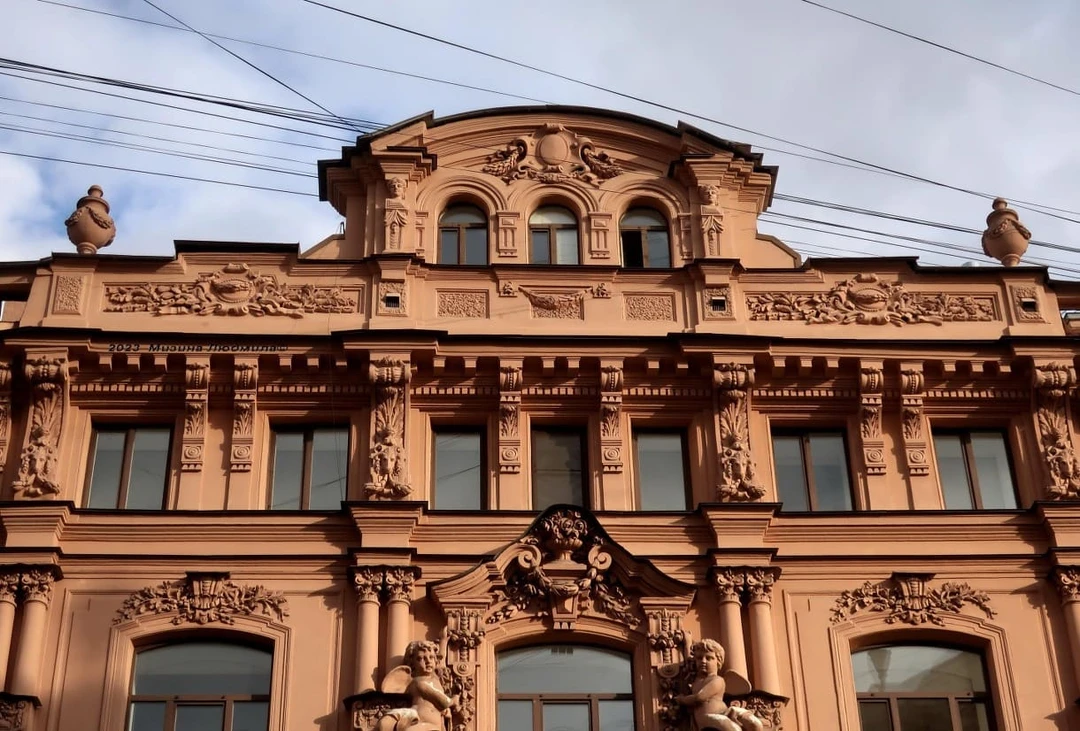Это символ перекрёстка «Пять углов» — так питерцы называют место, где Загородный проспект пересекается сразу с тремя улицами: Рубинштейна, Ломоносова и Разъезжей. Угловой дом‑утюг украшает двухуровневая башня с куполообразной крышей. Фасад неоклассической постройки впечатляет пышным декором: рельефные карнизы, вазы, десятки кариатид в виде жриц и танцовщиц.