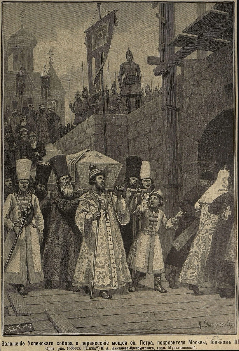 По приказу великого князя в 1326 году было начато возведение церкви, а уже через год Успенский собор принял первых прихожан. Одноглавый храм с тремя притворами стал первым культовым сооружением в столице, возведённым из камня. За образец зодчие взяли Георгиевский собор во Владимирской области, в городе Юрьеве‑Польском.