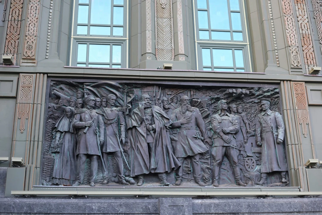 На нижнем ярусе горельефы с событиями конца XIX — середины XX века: тут можно увидеть героев Крымской войны 1853–1856 годов, русско‑турецкой войны 1877–1878 годов, сцены Великой Отечественной — оборону Москвы, битвы за Курск и Сталинград. Скульпторы при работе стремились к портретной точности: лица солдат они создавали по фотографиям участников войны из базы проекта «Бессмертный полк».