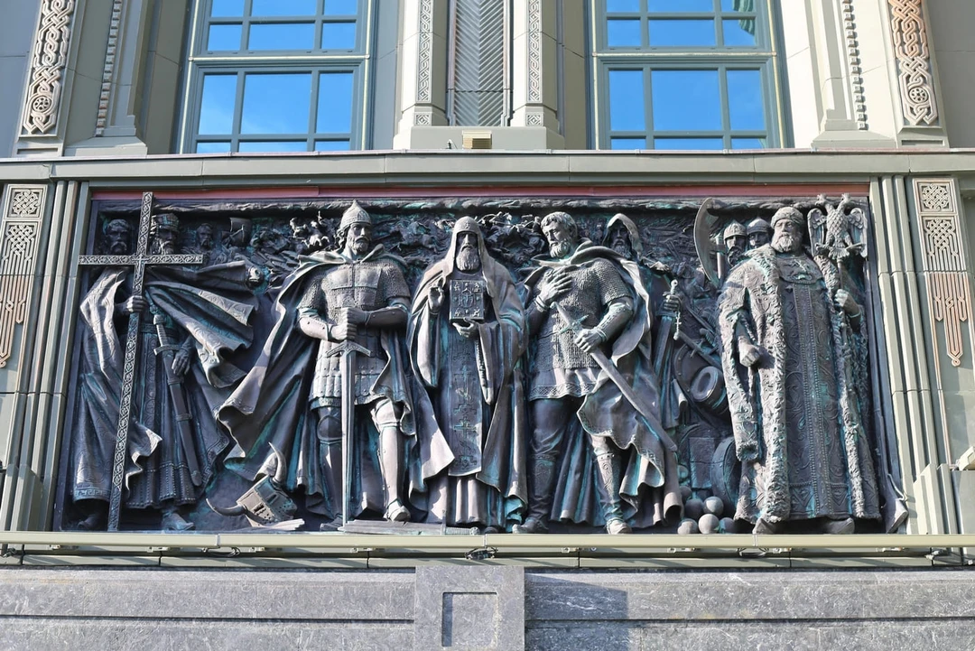 Внешнее убранство храма — это высеченная в металле летопись российской истории: скульптурные композиции на фасадах рассказывают о личностях, сыгравших важную роль в судьбе страны.