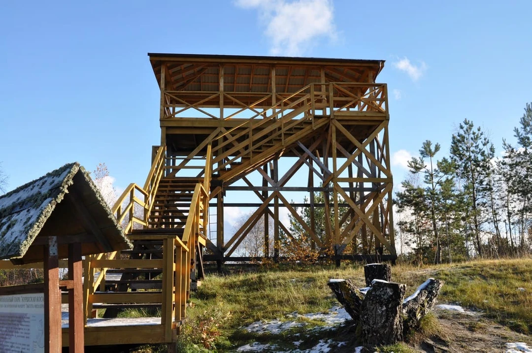 Точка притяжения на высоте Мюллера — смотровая площадка в беседке, куда ведёт деревянная лестница. Она располагается на высоте около 40 метров над уровнем моря, а подъём сюда несложный и занимает буквально пару минут. Торопиться вниз не обязательно — в беседке есть скамейки, где можно присесть и понаслаждаться открывающимися видами. С этого участка высоты Мюллера получаются потрясающие фото косы, откуда видно Балтийское море, озеро Чайка и посёлок Рыбачий. А с другой стороны — живописные пейзажи Куршского залива.